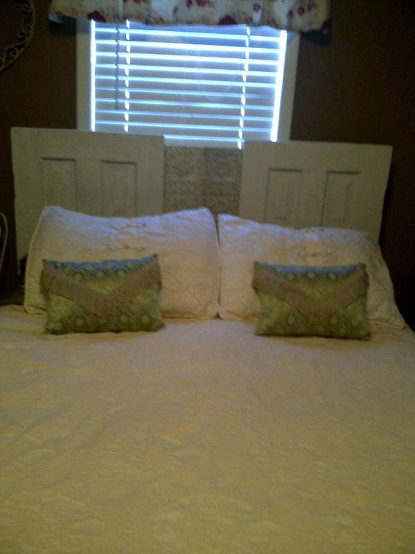 Check out my sister’s new headboard fashioned from two salvaged