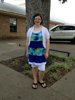 Age 12 and my niece has developed her own sense of style. Over a pair of white bermuda shorts she wore a white tank under a tiered sundress and topped the whole ensemble with a white sweater.
