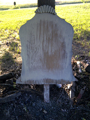 You can see the results of the first spraying here. Not too good, huh? But I am going for a rustic, imperfect look anyway, so I think it will turn out okay. Today I gave it a second coat, and the spray paint sprayed almost everything BUT the wood I was aiming at! At least this time I thought to put on a disposable glove first, and the wood is pretty well covered.