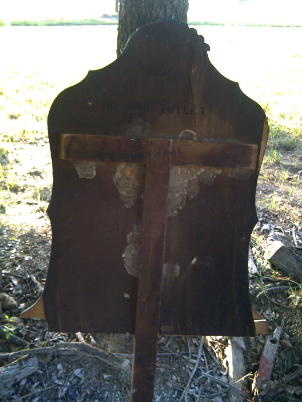The photo below shows the back of the piece. I’m thinking about painting it as well so I could possibly use it as a two-sided sign–perhaps for setting out by the road to direct folks to the wedding. What do you think?