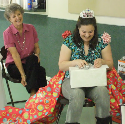 Don’t you just love the variety of papers and the variety of icing styles? I told you she was creative! Now here is a photo of the bride-to-be with her proud mother. . .