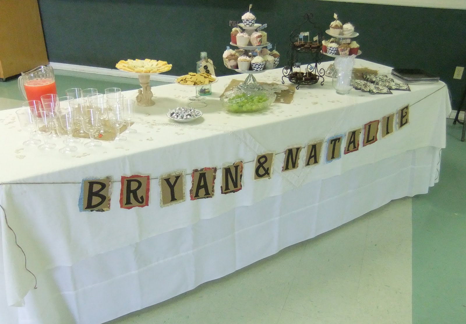 My sister Sharon was gracious enough to host a bridal shower for Natalie, my bride-to-be daughter, this past weekend. Sharon is thriftier than I ever could be, being a stay-at-home wife and mom to three children. She is a bit creative as well, a trait her mother and sisters recently discovered as her kids have grown and she has more time to exhibit that side of herself. I just have to show you what she came up with for the shower decorations and food. I was so proud of her!