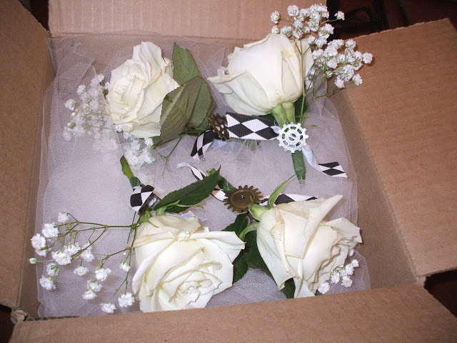 I actually made the bouquets and boutonnieres from roses and baby’s breath that I ordered from a local florist. I was able to buy the materials for the bridal bouquet, the matron of honor bouquet, and four boutonnieres for under $100! Bryan and Natalie decided against tossing a bouquet and garter, which also saved money.