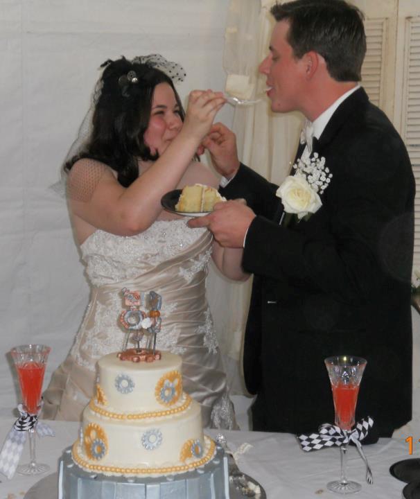 Give up? Our grand total, including gifts and food supplies, came to under $4700! I had hoped to pull off the wedding for around $3000, and I could have if I had stuck to my original dress and cake budget, and had done without a tent. As it was, everything turned out perfect, and the bride left happy, with memories of a wedding day she won’t soon forget. I have only one daughter, and I told her I will do this for her only one time. Lord willing, she and her husband Bryan will be happy for many years to come. . .