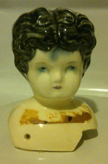 | A beautiful vintage china doll head. . . can you see the crazing on her neck? |
