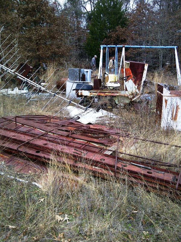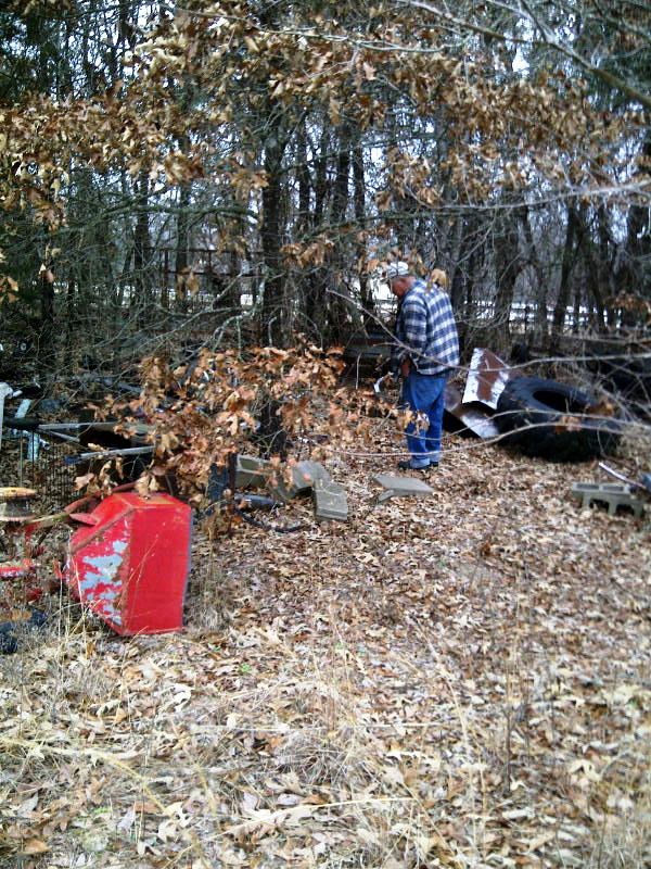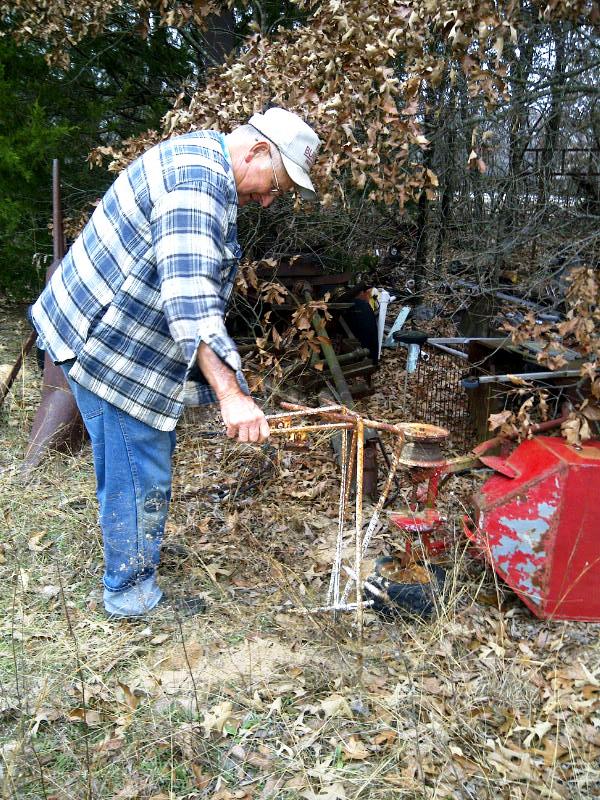 What’s going on here? What are these people doing? Welcome to our version of “American Pickers.” That is my dad and hubby picking their way through the piles of junk in the back of Dad’s property. This unique collection of old golf course equipment, home appliances, farm equipment, car, motorcycle, and bicycle parts, etc. began in 1975! It’s a picker’s dream!