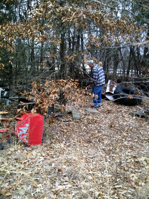 So today we picked. If you have been reading this blog regularly, you know that I am opening a booth in a local antiques mall very soon! (I can’t wait!) My dad generously offered me the opportunity to look through his junk to see if I could use anything. And boy, could I ever! It was more fun than an afternoon at Goodwill! The weather was perfect and hubby helped! It was actually his idea to go down to the junk pile today. . .he is looking for some steel to build a gun safe.