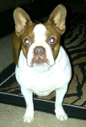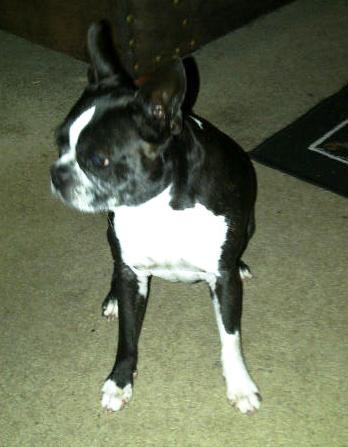I’m sitting in my chair in my living room, my back to the dining room and kitchen, when my other little Boston terrier gal, Molly, runs over and starts scratching at my knees. Thinking she just wants to play, I pat her head and resume my Facebooking, which was distracting me from my Monday housecleaning chores, by the way.