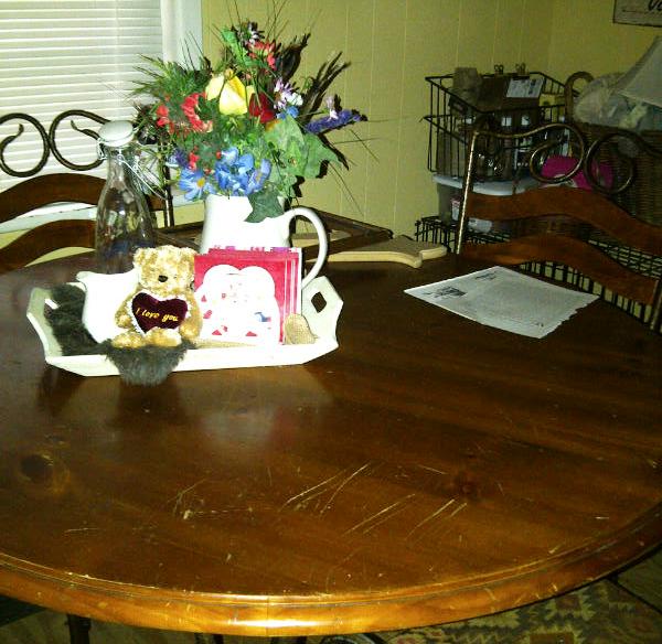 But now I know where those scratches on my table came from. And I blamed my husband for putting his tools there. Just another reason to paint it. . .