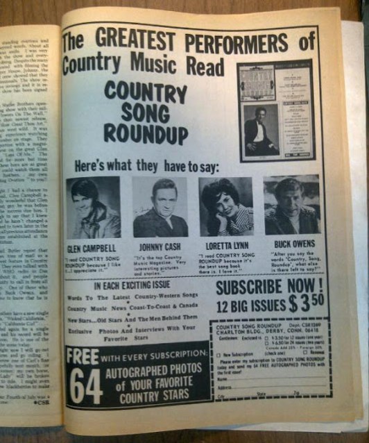 Daddy came across this old magazine the other day called Country Song Roundup dated December 1969. Check it out. . .