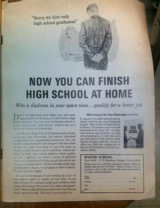The teacher in me found this last page interesting. It seems even in 1969 there were alternative ways to earn a high school diploma!