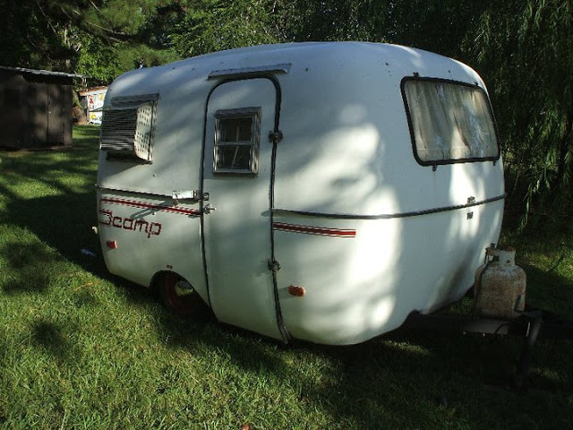 So. . .I left it for awhile. A long while. About two years, to be exact. Not just because I couldn’t figure out what to do with the interior walls, but I took a new job that required two hours of daily commuting which didn’t leave much time for Scamp restoration. Now that I am retired, I have much more time to devote to my little fiberglass gal.