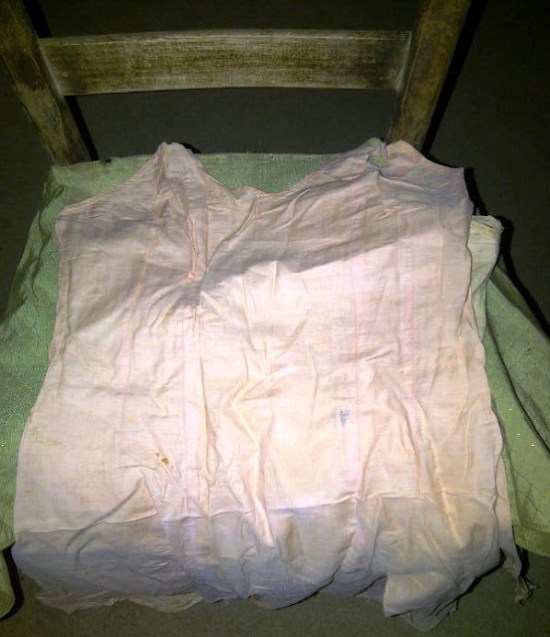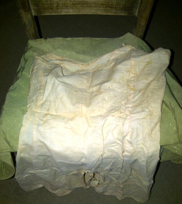 Here is one of the ladies’ slips. I can just imagine the lady who put the chair together finding old garments to make up the padding for the chair. Original repurposing! American ingenuity!
