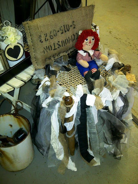 Maybe Raggedy Andy will help sell it. Or it will help sell Andy? I wish I had unwrapped those pieces from around the leg. Wait a minute. . .do I really want them to find new owners? Sometimes it’s really hard to let treasures go. . .
