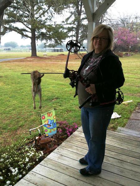 Yep, the photo below ain’t for the squeamish. I finally got a live animal with my compound bow! I shot a cottontail in my backyard and have the photo to prove it. Poor old Peter Cottontail didn’t hop down that old bunny trail fast enough. And before you start grieving and complaining and whining about me killing a poor defenseless rabbit, let me tell you that we are OVERRUN with them. They are really cute to watch but they wreak havoc on our gardens, so whether the cats kill their babies, the cars hit them, or the bowhunters use them for target practice, it helps keep the population under control.