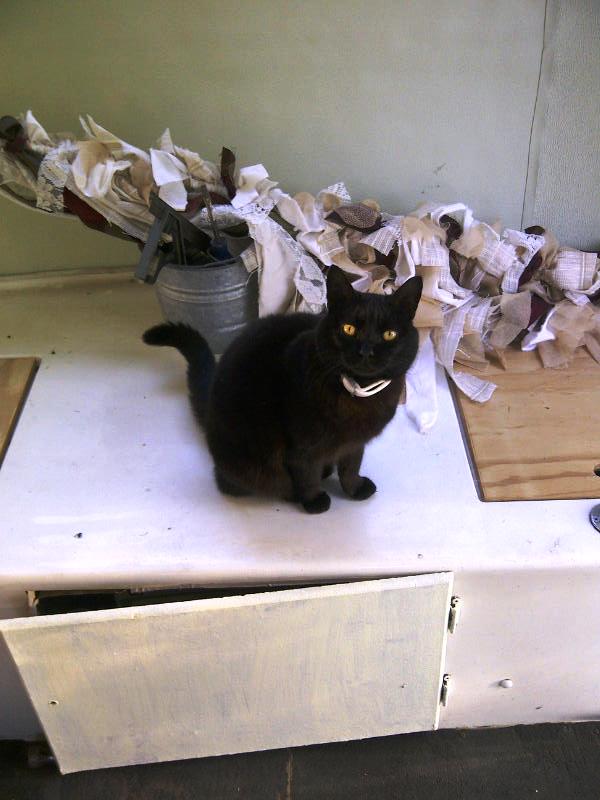 Lucy the cat keeps me company while I work. She usually ends up with some paint on her fur!