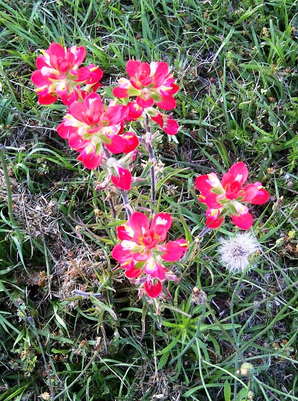 Closer up you can see why these little beauties are called paintbrushes. Their petals could very easily be used to paint with! (Is that a preposition I ended that sentence with?) Possibly the Native Americans (Indians) in this area used them with homemade paint before the settlers came.