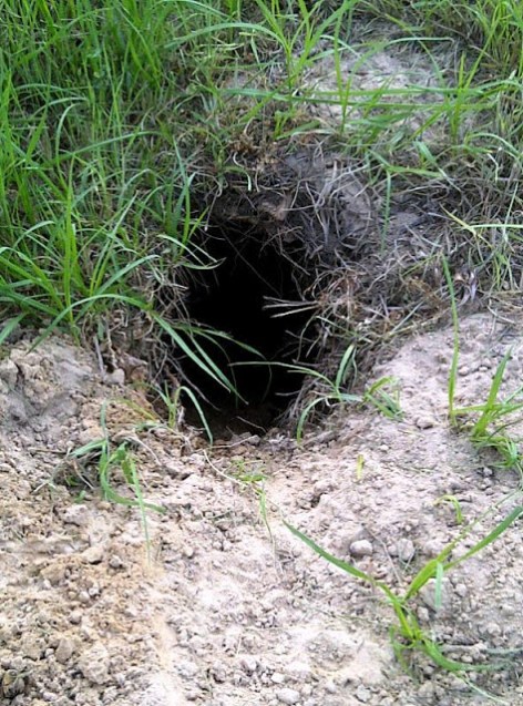 Hubby said it was an armadillo hole. Mom filled it up with dirt the next day so she wouldn’t accidentally break an ankle on her daily walk around the field.