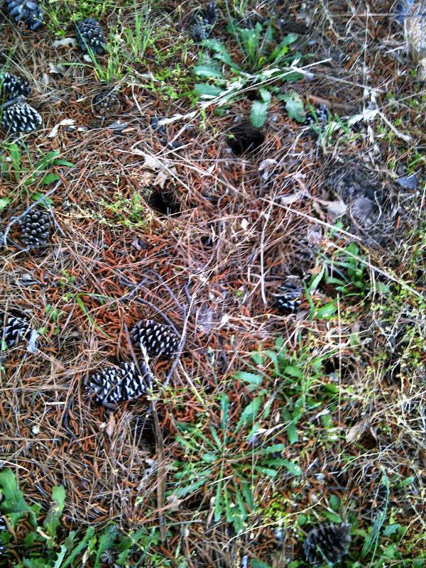 Much like feral pigs, armadillos dig holes in the ground looking for grubs and insects. These two-inch diameter holes were all over the place next to the shed. Maybe that’s what Whitey was barking at the other night!