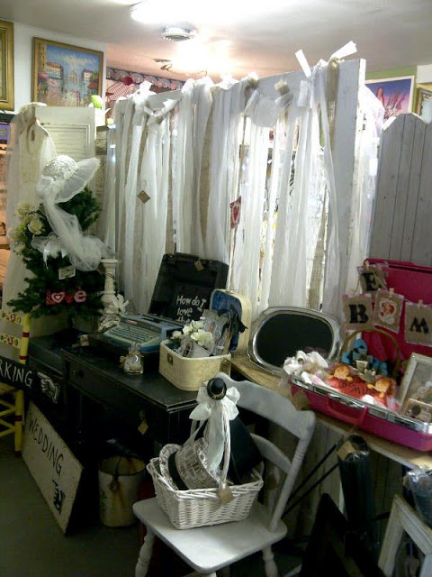 You can imagine how surprised and dismayed I was when the junk from my old space almost filled up the entire new space!  We moved my stuff on Tuesday and set everything up on Wednesday, leaving about one-third of the space for her things.  Gracious she was, though, with nary a complaint.  She said she will just keep the rest of her things at home until more of mine sells.  Sweet, huh?