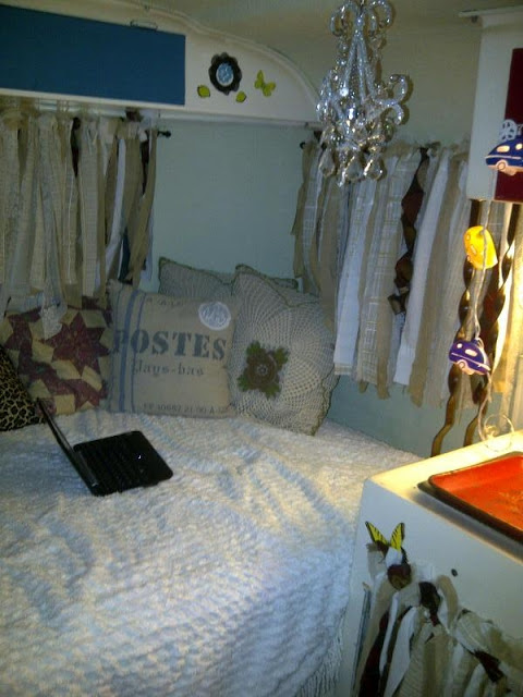 With all these posts about my little 1978 Scamp trailer, it must seem like I am a woman obsessed. I’m really not. Well, maybe just a little. I admit I have been spending a lot of time thinking about her and working on her. But I am now to the point where she won’t consume so much of my time. Now I can enjoy the fruits of my (and hubby’s) labor, make myself comfortable as I do so, and wait for the day when we can actually take her out on the road. Hopefully, that’s just a good washing, sanding, painting, and a set of new tires away. Maybe by the end of the summer?