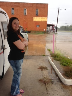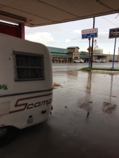 As soon as the rain let up, we headed to a nearby Dairy Queen where Natalie enjoyed a meal of chicken strips and I had a taco salad. I couldn’t resist taking a photo of that cute camper waiting for us outside in the parking lot!
