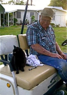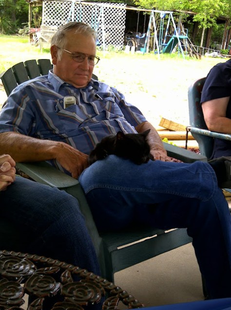 My dad is the last person I ever expected to bond with a cat. Some of my most memorable moments as a child are the ones where he flung a cat out the front door by the tail simply because the cat made the mistake of sampling Daddy’s supper plate. Stray cats wanting only to find a home full of children would suddenly disappear from the homestead without a trace. We dared not ask what happened to the cat. Mama wouldn’t have told us. She was always in cahoots with Daddy anyway.