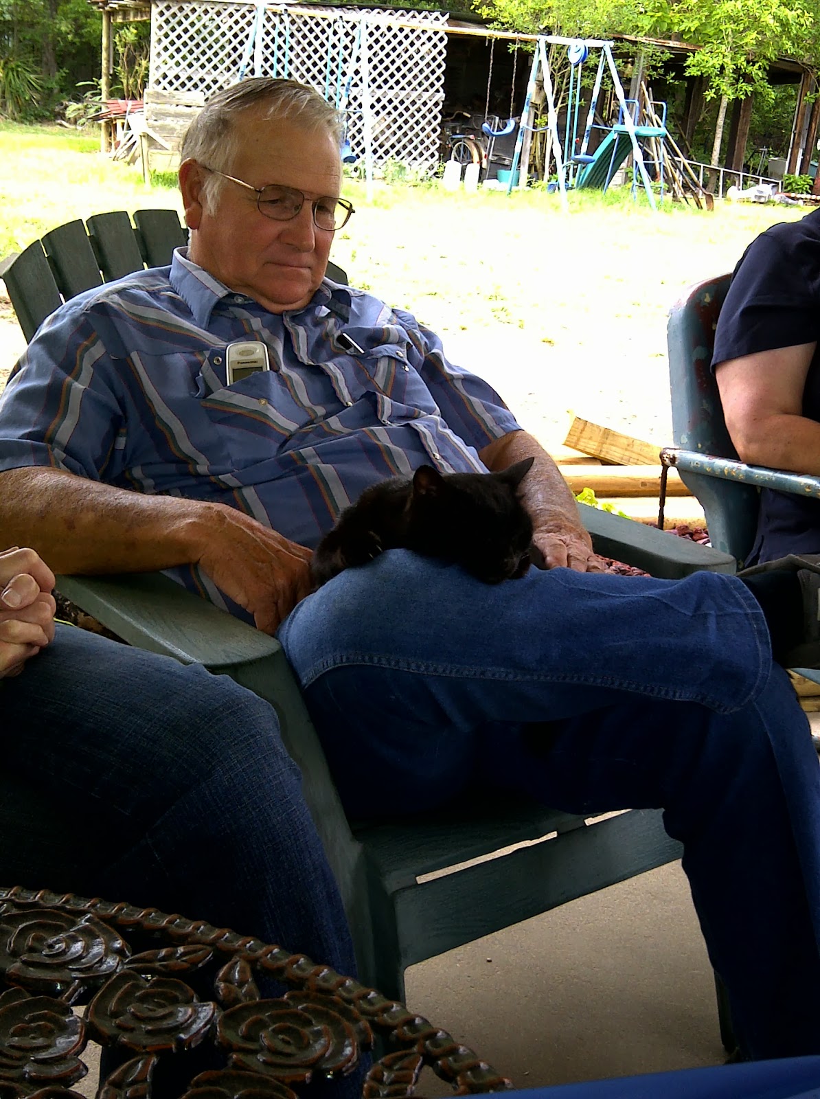 Imagine my surprise–and that of my three siblings–when Daddy suddenly began to show kindness to a black female cat that showed up at their house a few years ago, years and years after we kids had grown up and after mine had left home.