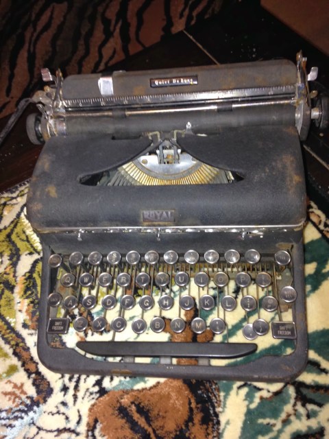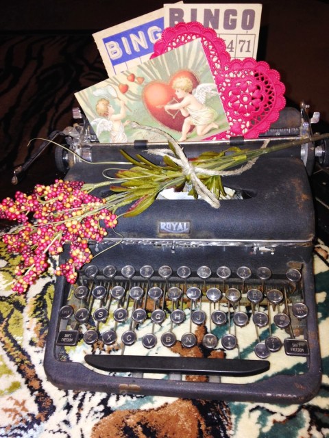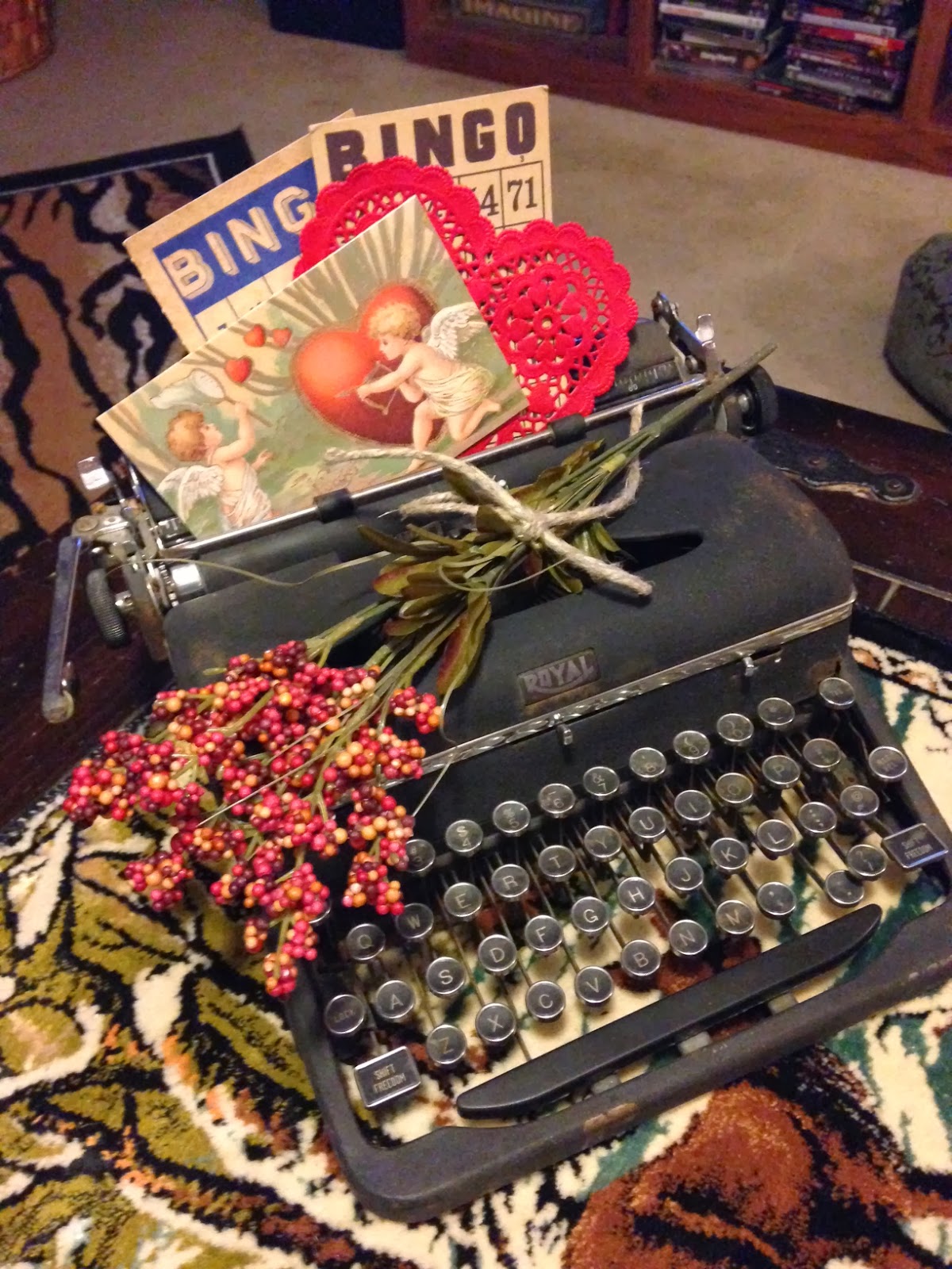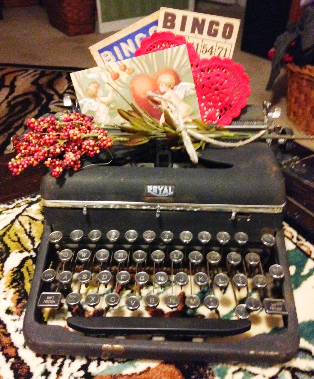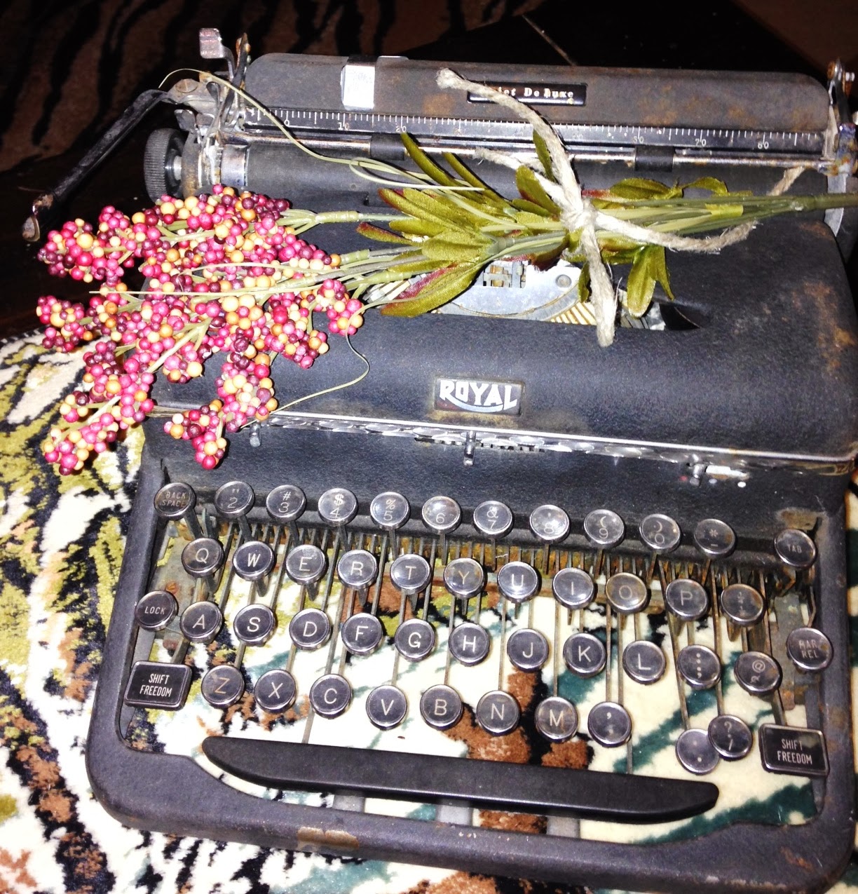 I had a vintage typewriter sitting on an antique school desk that seemed lost there. Unnoticed. So I brought it out.
