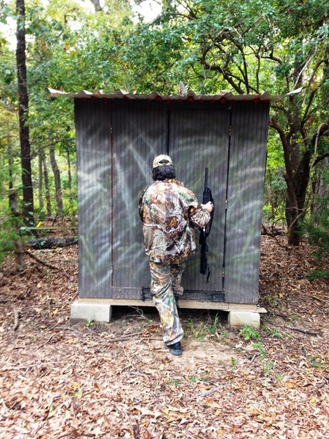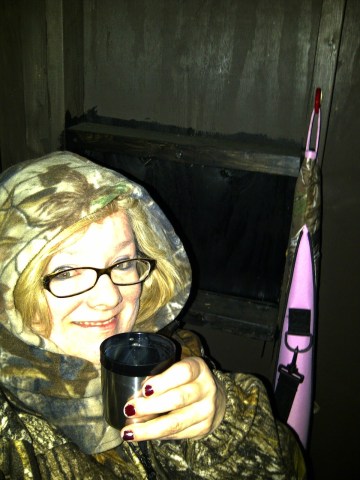 “Get my backpack!” I hissed/whispered/shouted at Hubby. I cared not if the biggest buck in ten counties was in earshot. “And my gun! And my coffee!”