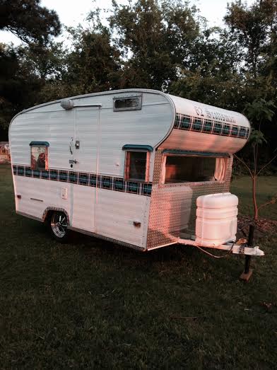 After a couple of months in which we installed an air conditioner, bought new bedding, added homemade curtains (thanks, Bren!), and redecorated in my junky, gypsy-bohemian vibe, we are ready to get Miss Millie registered and retitled from Arizona to Texas. The county tax office informed me that I would need to get her inspected and weighed! Excuse me? Yep, to transfer the title from Arizona. Aarrgghh.