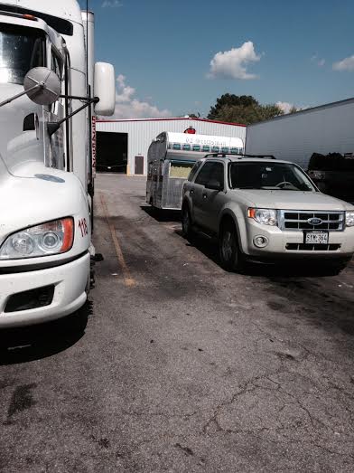So. . .we hitched her up (the hubs is recovering from toe surgery but is well enough to help) in the simmering Texas humidity and we pulled her (with me driving!) eight miles to the nearest auto shop.