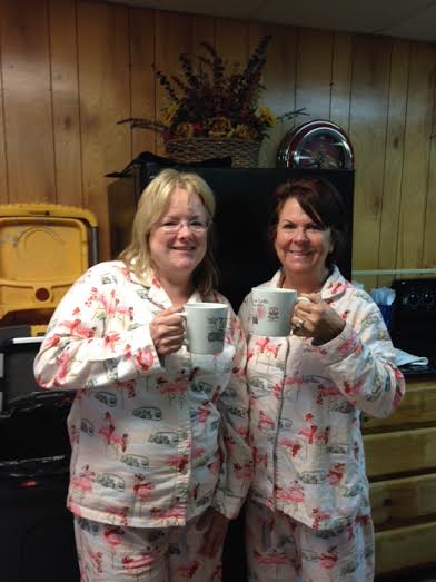 | Twinkies: me and Marsha, same pj’s, same coffee mug! |