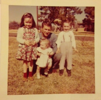 | Left to right: me, baby sister Sharon, Daddy, brother Allen |
