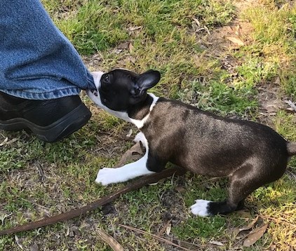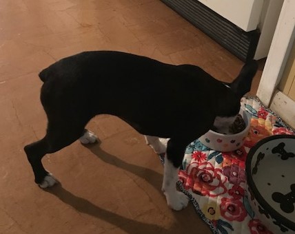 At four months we took our newest family member to the vet for spaying and docking her unusual long tail. Boston terriers just aren’t supposed to have long tails, and Dr. B. said since the docking wasn’t done shortly after birth, it could easily be done while she was under anesthesia during spaying surgery. As much as we hated to put her through that, we knew she would heal quickly. She went through the surgery like a champ and challenged us, even dared us, to keep her quiet the first week of recovery.