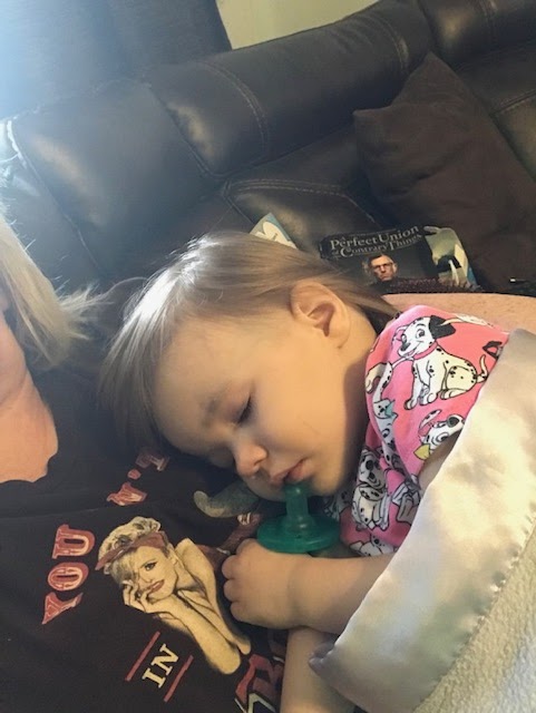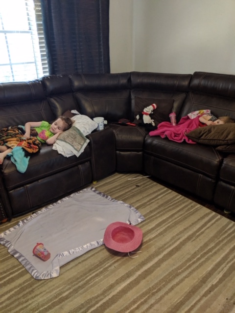 | Asleep on the “Coco-pedic.” As much as I hate for them to be sick, I do love the cuddling. |