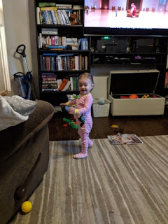 | Baby during a burst of energy before bed. |