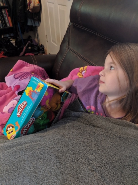 | Too sick to play with the new Play-doh set Mommy got her. |