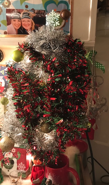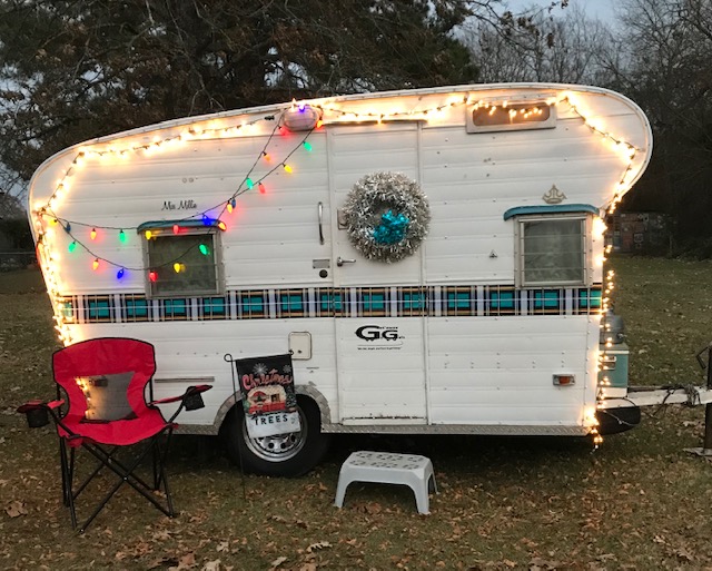 - Note the pride in the five-year-old’s stance as she finishes decorating the little silver tree for my camper.