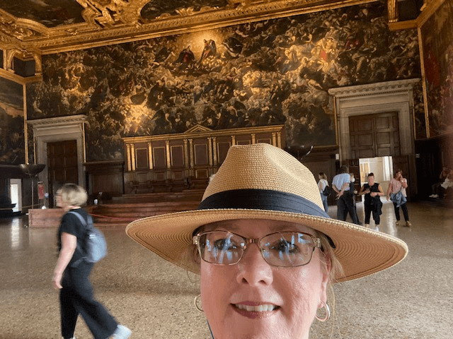 Me at the Doge’s Palace in Venice. Behind me is the largest canvas in the world, Il Paradiso, by Jacopo Robusti. Amazing.
