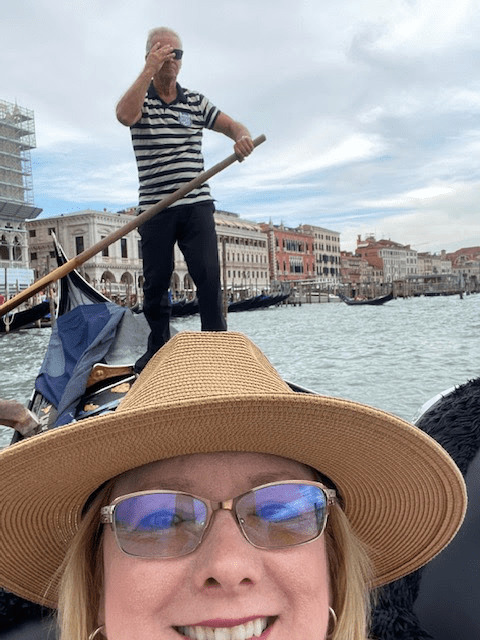 A gondola on the Grand Canal in Venice. The gondolier is behind me.