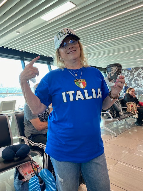 At the airport in Rome waiting for the long flight back. Do I look like a tourist? ; – )