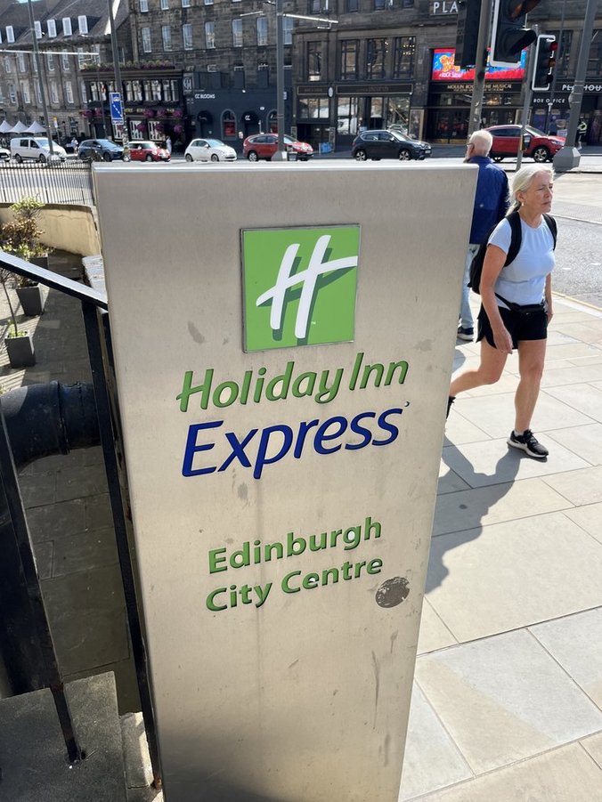 To continue Day 2, we took a taxi from the Edinburgh airport to our hotel, the Holiday Inn Express Picardy Place. Trisha didn’t want the hassle of lugging bags and trying to find the right bus or tram, so she splurged on a cab. And splurge she did. Our very congenial Scottish taxi driver was more than happy to show us many of the Edinburgh landmarks, and I’m sure he took us out of the way to do so. He was entertaining, not only with his Scottish accent, but his narration of what we were seeing. I was slightly overwhelmed, but I was also running on fumes, having not slept much and crossed a million time zones. (I exaggerate, it’s actually only six. It just felt like a million.)