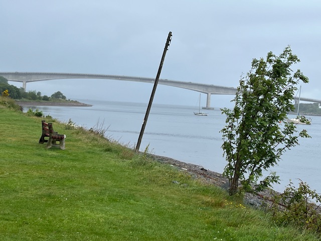 After driving around and around the streets of Inverness looking for a parking spot so we could board the tour bus to Isle of Skye, we were finally able, with the help of the tour guide, find a parking garage three blocks from the bus! I was glad we’d had the time to get coffee and breakfast before that hurried hike. We were the last ones on the bus, and I daresay if Trisha hadn’t asked the driver where we should park, he would have taken off without these “two crazy Americans!” She’d asked him not to leave without us!
